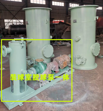 3、裝球室:裝球室是膠球清洗裝置中用于放球、取球、存儲和觀察膠球循環情況的裝置:它由外殼、漏斗、切換閥等部件組成,并配有觀察窗、放氣閥、放水閥。ZQS型裝球室(膠球存儲器)