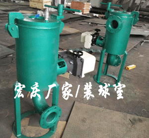 3、裝球室:裝球室是膠球清洗裝置中用于放球、取球、存儲和觀察膠球循環情況的裝置:它由外殼、漏斗、切換閥等部件組成,并配有觀察窗、放氣閥、放水閥。ZQS型裝球室(膠球存儲器)